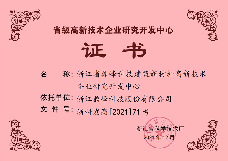公司為國家級“專精特新”小巨人企業(yè),國家級高新技術企業(yè),擁有與多家高校聯(lián)合組建的省級研發(fā)中心。公司經(jīng)浙江省散裝水泥發(fā)展中心、浙江省建筑業(yè)管理局備案,為浙江省首批通過試驗室驗收的企業(yè)。近年來公司陸續(xù)通過了質量管理體系認證、干混砂漿產(chǎn)品認證、環(huán)境管理體系認證、能源管理體系認證、職業(yè)健康管理體系認證、中國綠色建材產(chǎn)品認證、工業(yè)化與信息化融合管理體系評定。自2017年起公司已連續(xù)五年被中國建筑材料聯(lián)合會預拌砂漿分會評為“全國預拌砂漿行業(yè)先進企業(yè)/優(yōu)秀企業(yè)/最具推動力企業(yè)”。